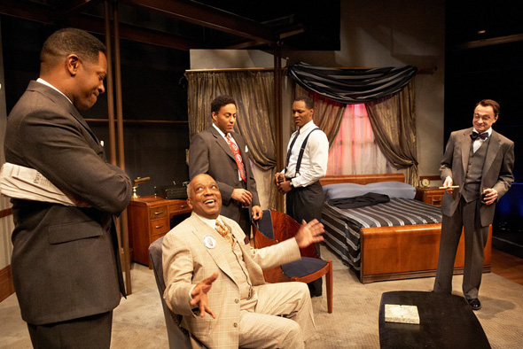 Yet despite the brow-beating they all take from Robeson, each of the other black men has his pride, and each passes through a personal arc of shock, indignation and consummation. Anthony Fleming III’s Joe Louis nearly steals the spotlight from Meredith’s Robeson, and with far fewer words. Fleming catches the Brown Bomber’s coiled power, and more than once unleashes just enough of it to put everyone else on guard. The boxer is also impatient, eager to sign off on Rickey’s plan and get on with his day. Fleming’s restiveness hones the production’s tension to an edge you can feel.