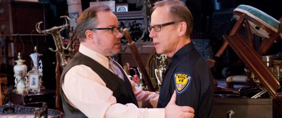Spencer reveals a good deal about Victor as the impatient cop demands a price from ancient buyer Solomon, a philosophical and unflappable man of 89 brought fetchingly to life by Leonard Kraft: The policeman is uncomfortable revisiting this place he hasn’t seen in many years, these rooms where he cared for his ailing father, an erstwhile millionaire left indigent and frightened after the crash of ’29. And yet even in his distraction, the cop in Victor is ever the analytical listener. He’s expert at connecting dots, discerning intentions — or, as he puts it at one point, making sure he doesn’t end up with a knife in the back.