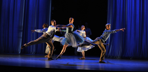 The entire cast is a pleasure, and that includes the carefree corps of five dancers and 12 playful choristers who added their frisky talents. The parent generation is represented by baritone Paul Scholten, who was genuinely touching as Semyon, the only soul unhappy to be promised a Cheryomushki flat. His decrepit house has fallen down around him, but he’s gripped with longing for the old neighborhood anyway, and he sings one of those soaring love songs to a place that reminded me of Hoagy Carmichael’s “Georgia on my Mind” and William Bolcom’s “New York Lights.”