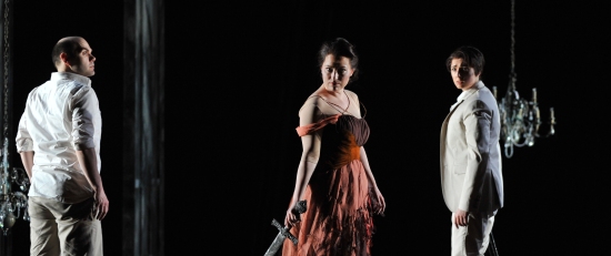 Set designer François-Pierre Couture’s starkly mystical décor and James Darrah’s commingling of ancient and modern costumes added a sharp accent to the opera’s Baroque birthright, and to its timeless piquancy.