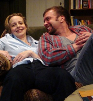 Betty (Natasha Lowe) and her brother Bobby (Darrell W. Cox) take a break from packing up the cabin. (Production photos by Wayne Karl.)