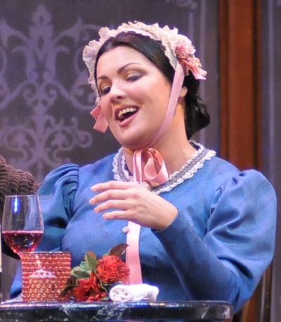 Captions and credits: Home page and top: Russian soprano Anna Netrebko is Mimi in “La bohème.” Descending: Mimi (Anna Netrebko) wears the new bonnet Roldolfo has purchased for her. Rodolfo (standing, Joseph Calleja) sings Mimi’s praises to his friends (left to right) Schaunard (Joseph Lim), Colline (Andrea Silvestrelli) and Marcello (Lucas Meachem.) Musetta (Elizabeth Futral) and Marcello (Lucas Meachem) have a tempestuous affair. Below: Anna Netrebko sings “Mi chiamano Mimi” in a contemporary production at the Salzburg Festival. Mimi Michael Yeargan’s set for Act 2, the Latin Quarter on Christmas Eve.