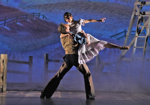 This big show moves with sure-footed purpose under stage director Gary Griffin and musical director James Lowe. On hand to help re-create Agnes de Mille’s original 1943 choreography was Gemze De Lappe, 91, who performed on the show’s first national tour nearly 70 years ago. Here, the smartly turned dances are capped by an exquisite dream ballet in which Stephen Hanna and Jenna McClintock take the roles of Laurey and Curly. David Adam Moore shows his remarkable versatility by extending his portrait of Jud Fry into the choreographic dream.