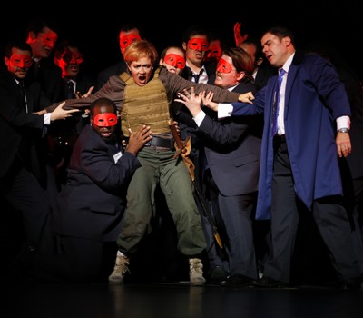Chicago Opera Theater’s production of “Giovanna d’Arco,” helmed by director David Schweizer, fell into that trap. Fair enough that the production subsumed the Joan of Arc story into a play-within-a-play concept, so that the tale of God’s 15th-century standard bearer is enacted by a modern fundamentalist Christian sect. And fair enough, again, that the idea allowed for some low-cost solutions to massive battle scenes, which showed scenic and lighting designers Jack Magaw and Keith Parham in top form.