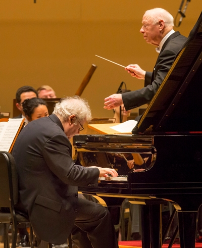 Mozart at standard size opened the program: an infectious performance of the 27th Piano Concerto in which Ax and Haitink gracefully bobbed and weaved together like longtime chamber music partners. The concerto’s slow central movement is its heart, and a wistful one. Ax’s soulful playing evoked the Countess Almaviva’s heart-broken aria “Porgi, amor,” at the opening of Act II in “The Marriage of Figaro.” The pianist captured this operatic quality without allowing the musical line to turn flaccid, or to become a caricature.