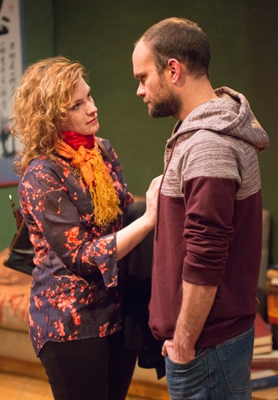 Director Marti Lyons imbues Rebeck’s play with an infectious spontaneity. We are very much in the room – designer Joanna Iwanicka’s tastefully appointed apartment — with these clever, ambitious young people. We sense the withering heat from Leonard’s tough love and the electricity in Rebeck’s taut dialogue. It is the crisp, charged, nuanced language of a master. A veritable seminar.