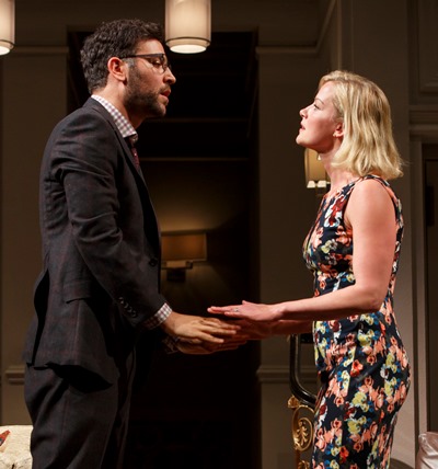 If Akhtar’s grim, albeit comedy-laced, story bears the resonance of Greek tragedy, perhaps one might also say the gods do not love the beleaguered Amir. He’s a seemingly solid guy who lives in an elegant upper east side New York apartment (designed by John Lee Beatty) with his beautiful blonde wife Emily. Amir prides himself (there’s a Greek flaw) on $600 shirts and stands at the cusp of a partnership in the law firm where he works.