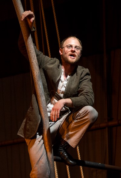 Which brings me to the story-teller. Call him Ishmael, sole survivor of Ahab’s folly, a rookie whaler who comes immediately under Queequeg’s wing in a very funny episode that involves sleeping arrangements and a smoking pipe that doubles as a tomahawk. Jamie Abelson is an amiable Ishmael, a faithful observer who generally seems as amazed as the rest of us.